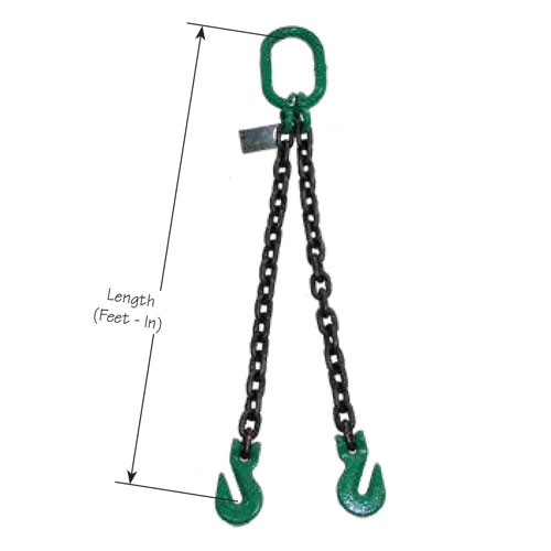 " Made from Grade 100 chain and fittings, new and certified Double leg design features an oblong master link on one end with self-closing safety hooks on the other Great for lifts with two pick points for greater load stability Comes furnished with a metal load tag that indicates chain size, le...