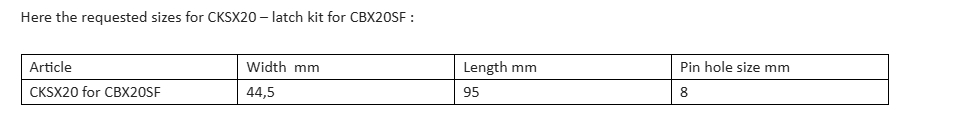 What`s the length & width on this latch, along with pin hole size? Cartec 3/4" CBX Latch Kit