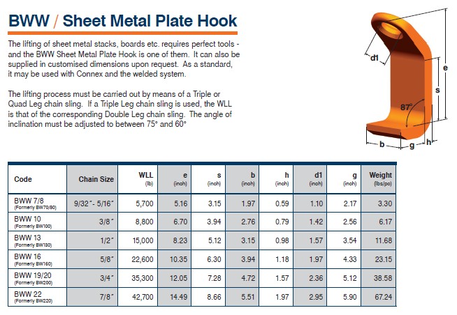" Pewag BWW Plate Hooks (Grade 100 Alloy Steel) \n Pewag BWW Plate Hooks are purpose-built for lifting steel plate and similar loads. Their tall, deep throat opening makes them ideal for grabbing individual sheets as well as stacked materials—including steel, aluminum, and even timber—when used...